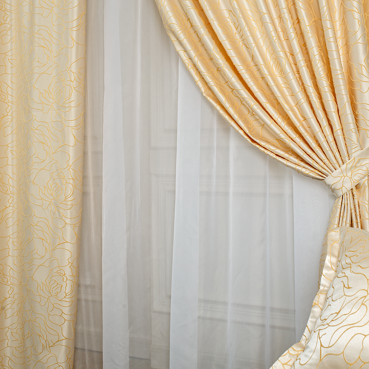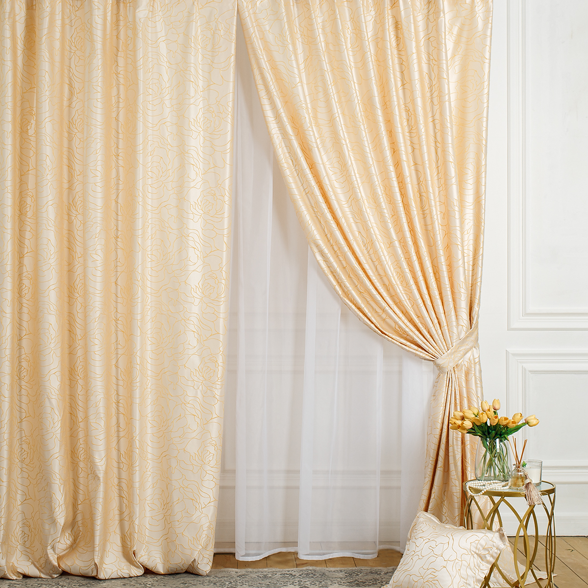 В комплект входят: портьеры 200х275 см – 2 шт., подхваты 8х70 см – 2 шт.