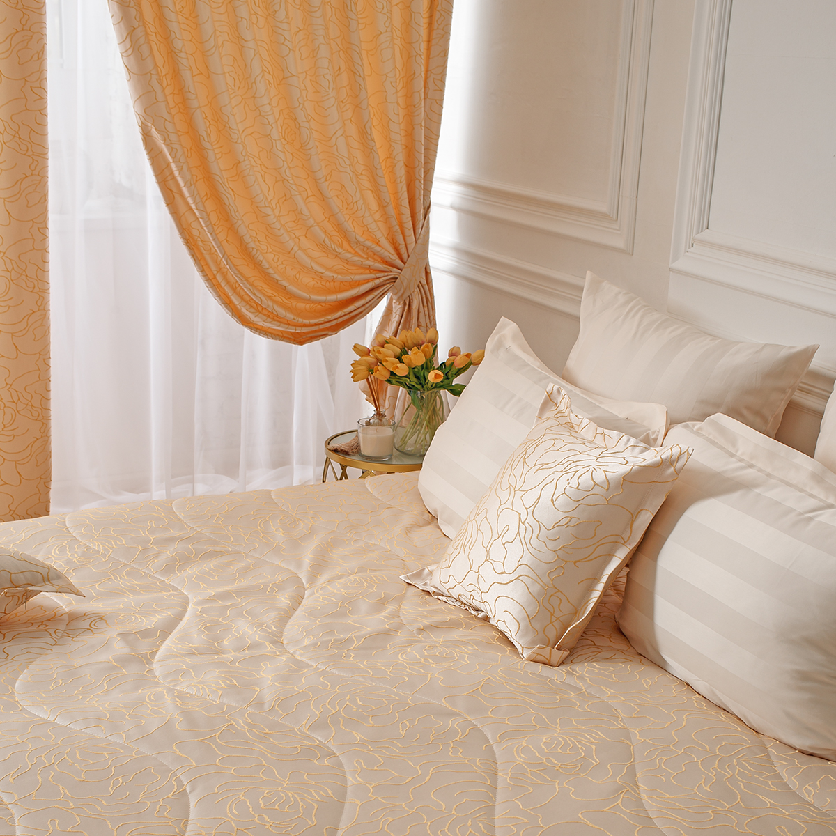Селеста - базовая коллекция. Замысловатые линии, изящно переплетающиеся в оригинальный узор, элегантный сдержанный блеск жаккардовой ткани, сочные и одновременно универсальные оттенки делают эту коллекцию настоящим украшением любой спальни.