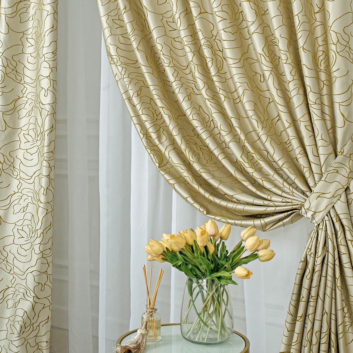 В комплект входят: портьеры 200х275 см – 2 шт., подхваты 8х70 см – 2 шт.