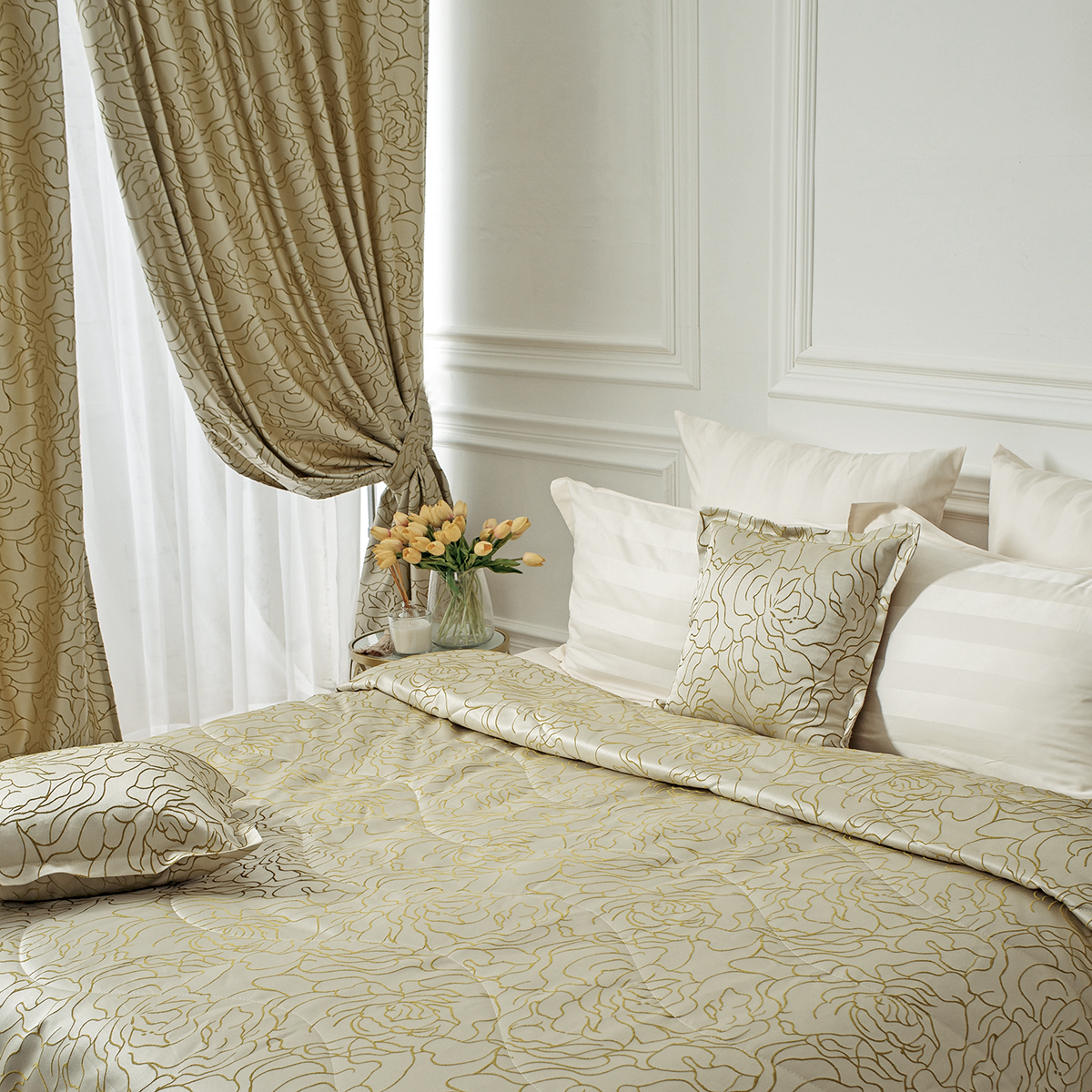 К шторам можно выбрать покрывало из коллекции La Prima для создания неповторимой изюминки в вашем доме.