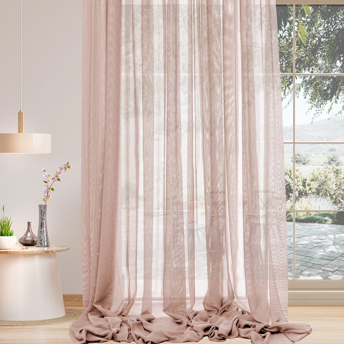 Легкая невесомая и в тоже время особо прочная, износостойкая ткань соткана в виде сетки. Натуральная фактура очень мягкая, приятная на ощупь. Прекрасно драпируется, может использоваться как самостоятельный декор окна.
