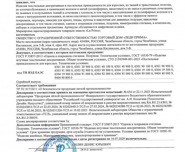 и детали заказа комплекта постельного белья с нестандартным размером.
